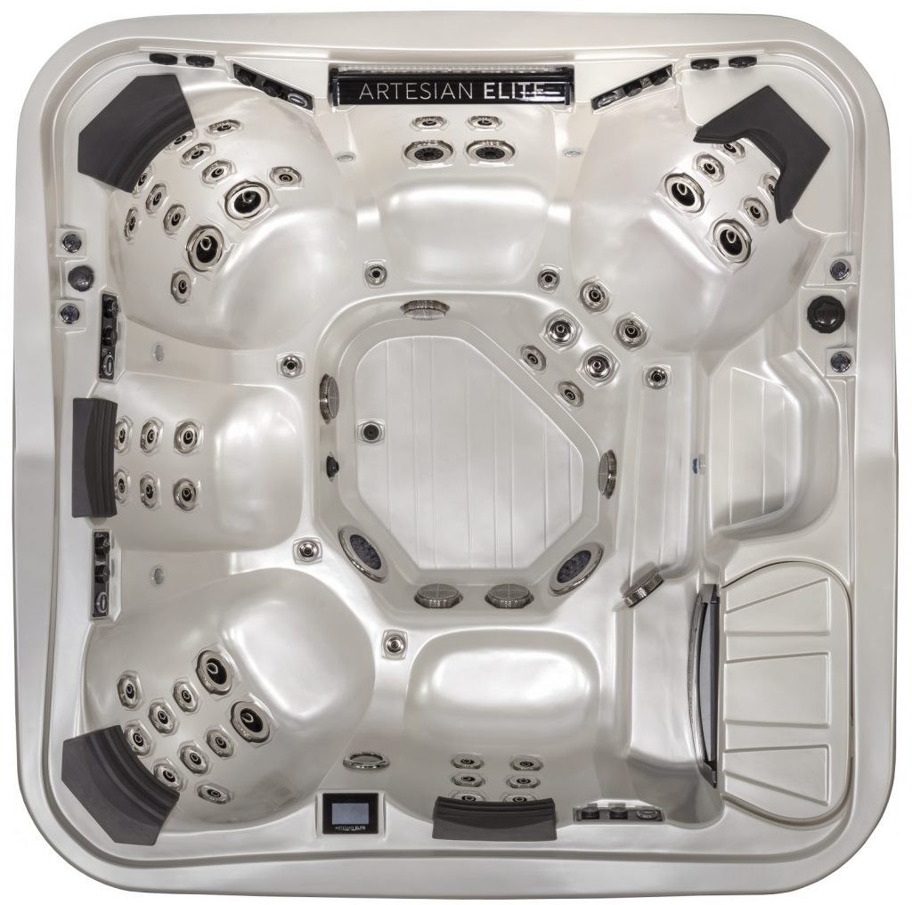 Our flagship Pelican Bay is your dedicated entertainment space, designed for comfort. This astonishing 71 high-performance jetted spa offers the most space of any Artesian Elite spa. Its unprecedented nine seat layout provides top-of-the line luxury and comfort, without sacrificing therapy or performance.