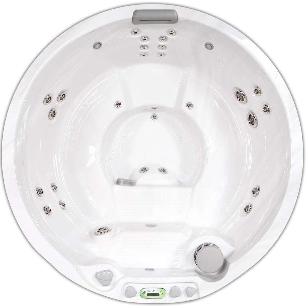 After a long day, engulf your aching muscles in the ultimate hydrotherapy of the 627M. The strategically placed jets in this round spa massage and loosen tense muscles, from the neck and back to the legs and feet. The 627M also features a whirlpool jet. In addition, the versatile size of the 627M makes it a perfect fit for a small patio or deck, or even indoors.